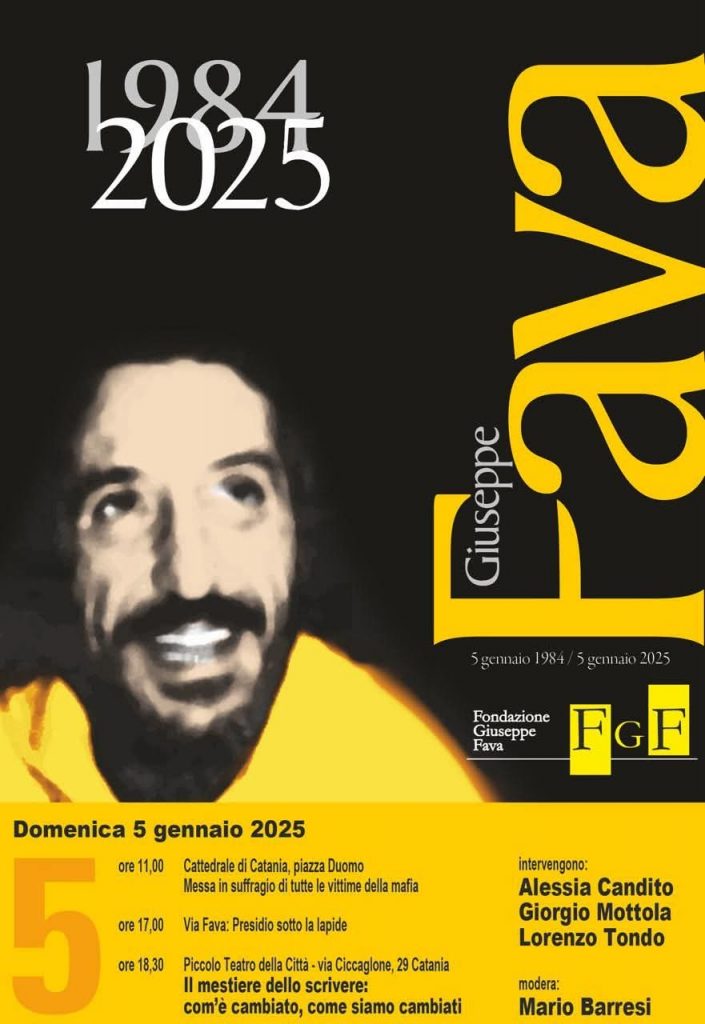 Sembra paradossale, ma una figura come quella di Fava, vissuta intensamente negli anni del giornalismo e poi rivendicata da una minoranza degli abitanti di Catania nella prima fase dopo l’omicidio mafioso, è progressivamente divenuta parte integrante della città che lo aveva disprezzato e calunniato. Contro Catania aveva scritto Fava a lungo, con un’opera di denuncia civile di stampo europeo (in una terra dove l’illuminismo non è stato storicamente vissuto nella sua integrità, anzi più spesso è stato visto con diffidenza se non con odio) e con Catania è finita la parabola del post- omicidio mafioso. Con Catania e la catanesità. Quindi, da tempo 5 gennaio è sinonimo di riti, di “momenti ecclesiastici” guidati da “parrocchiani” del “Verbo”: può capitare sotto la lapide (con annesso omaggio del Comune) che ricorda l’uomo, può capitare al corteo che in base al momento politico può inveire contro la Lega come contro la Meloni (ma che c’entra?). Quest’anno, invece, siamo arrivati alla Santa Messa in Cattedrale e ad un appuntamento sul tema dello “scrivere”: insomma, siamo a metà strada fra la “sacralità” dei cattolici all’italiana e il solito “salotto buono” dei benpensanti. Sembra di rivedere la festa di Sant’Agata, la festa della patrona, dove la catanesità si mostra al suo massimo, a metà fra delirio mistico e delirio affaristico.
