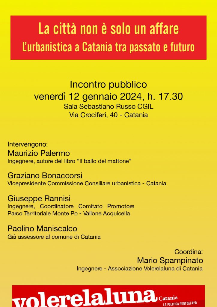 “La città non è solo un affare”: incontro domani sull’urbanistica a Catania