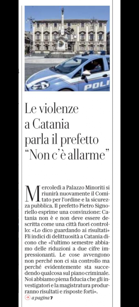 Ma il Prefetto ha detto che “non c’è emergenza” violenza a Catania. Sembra di sentire le parole dei Prefetti degli anni Ottanta.
