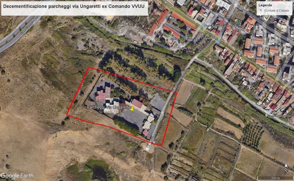 Sotto l’aspetto della Infrastrutturazione Verde della Città, così come indicato nelle Linee Guida del PUG in corso di redazione, la decementificazione della superficie dell’attuale parcheggio e la realizzazione del percorso pedonale/ciclabile verde consentirebbe di collegare i giardini dell’Ospedale Vittorio Emanuele (peraltro residui di giardini storici e sede del futuro museo dell’Etna), le aree verdi del Monastero dei Benedettini, di Piazza Dante, di Via Antico Corso, le possibili alberature di Piazza Vaccarini -con la decementificazione dell’attuale parcheggio asfaltato- il fronte lavico del 1669, le Cave Daniele fino alle alberature di Piazza Montessori.